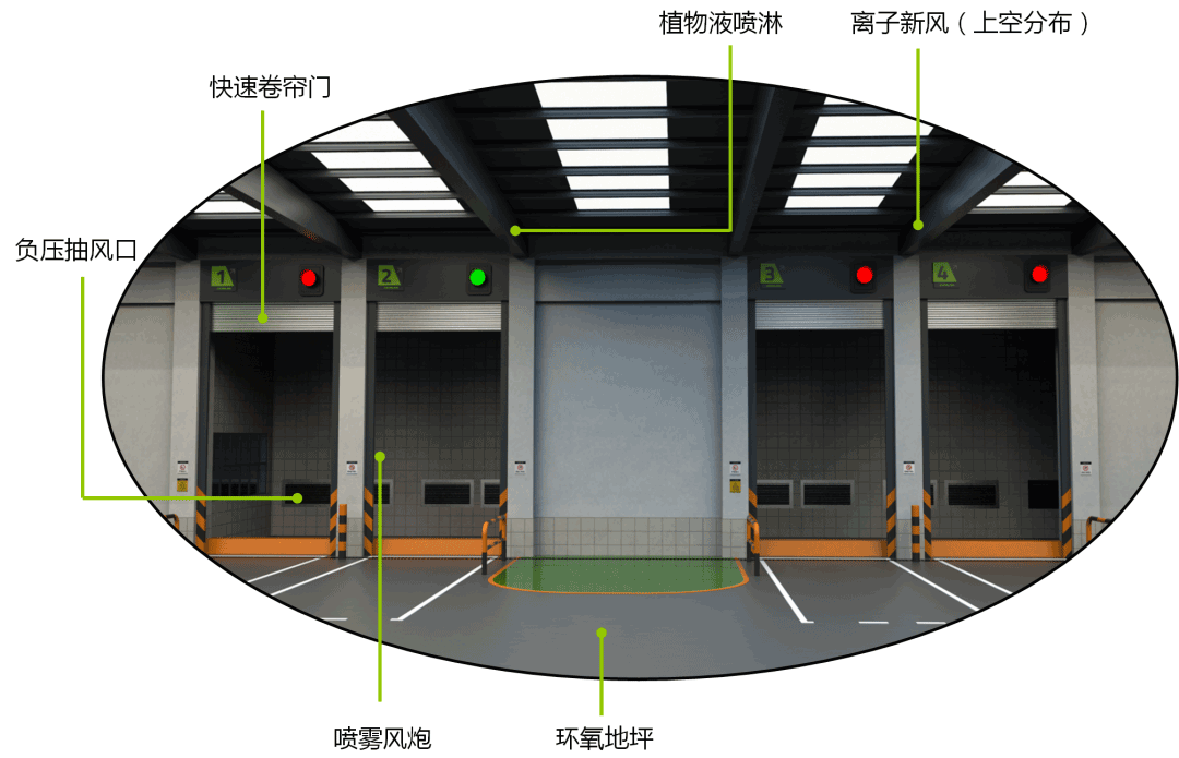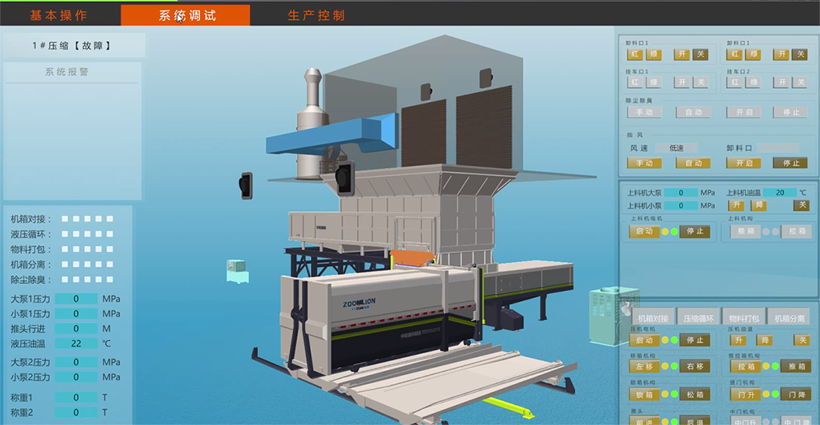在智能操作方面,大型生活垃圾轉(zhuǎn)運站所有設(shè)備均可通過中央控制系統(tǒng)遠程操作,站內(nèi)作業(yè)車輛通過交通指揮系統(tǒng)全自動點對點指揮,垃圾壓縮循環(huán),快速卷簾門、負壓抽風系統(tǒng)、離子新風系統(tǒng)及植物液噴霧除臭系統(tǒng)可按設(shè)定程序自動運行,無需人工干預。此外,三維動態(tài)仿真中控界面結(jié)合站內(nèi)監(jiān)視系統(tǒng),可實現(xiàn)作業(yè)過程的適時動態(tài)顯示及監(jiān)控。站內(nèi)配置的自動清渣及自動沖洗系統(tǒng),使站內(nèi)清理保潔自動化,解放人工勞動力。