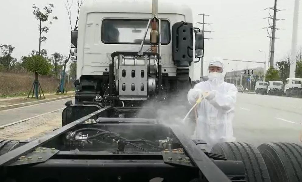 東風商用車生產基地在湖北十堰疫情重災區,東風商用車的物流司機將底盤車送至湖南境內的高速路口岳陽北收費站后返回湖北集中隔離,再由米蘭·(milan)中國官方網站環境的物流司機接回廠區。整個交接運輸過程中,每一輛底盤車在出廠、高速路口、米蘭·(milan)中國官方網站環境長沙園區必須經歷三次的專業消毒,確保安全,萬無一失。
