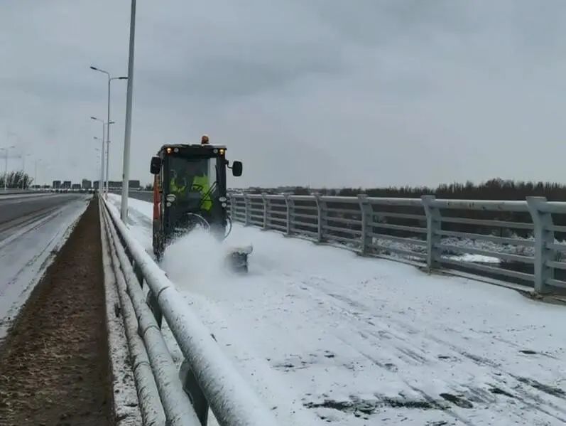 26日0點0時,撫順項目在風雪寒夜中啟動抗冰除雪“零點行動”,近700人嚴陣以待,73臺除雪車輛整裝待發(fā),以雪為令、聞雪而動,主干道大型除雪車火力全開,快速清除路面積雪;輔道和狹窄路段運用小型手扶式掃雪機高效清理,連續(xù)奮戰(zhàn)15小時,疏通道路140公里,清除積雪1500余噸,保障道路暢通無阻。