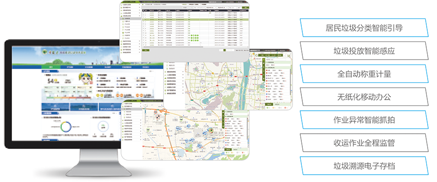 通過實時的數據交換,實現垃圾分類、收集運輸、處理,人機交互界面實現用戶和系統的互動。